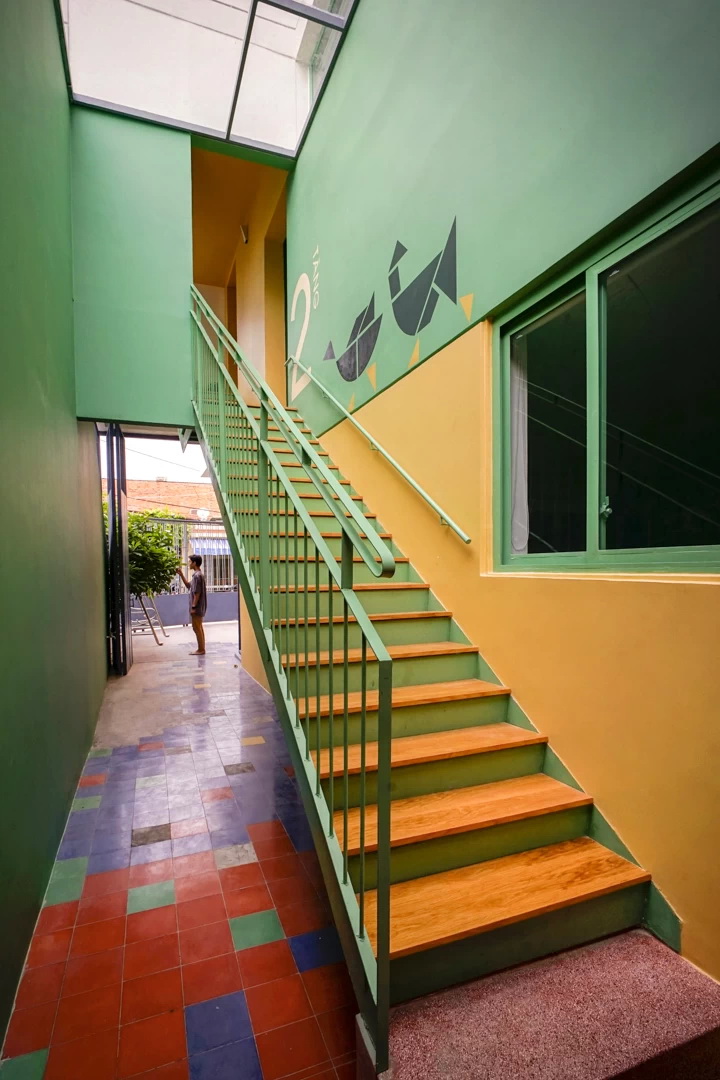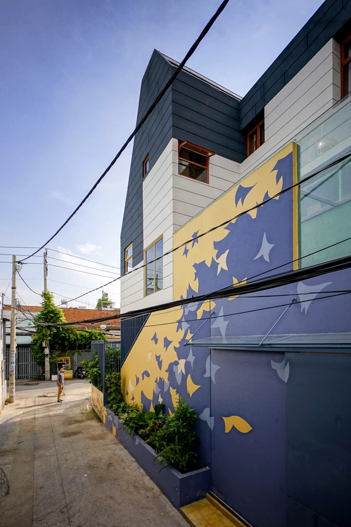 Located at the junction of a small quiet residential area in District 12, the investor wished to set up a group of 4 classes, combined with their own living space on the top floor. The challenge of the project is how to balance the classroom area as well as other demands for a preschool, while ensure the outdoor playground - where stimulates activities and interactions between children.