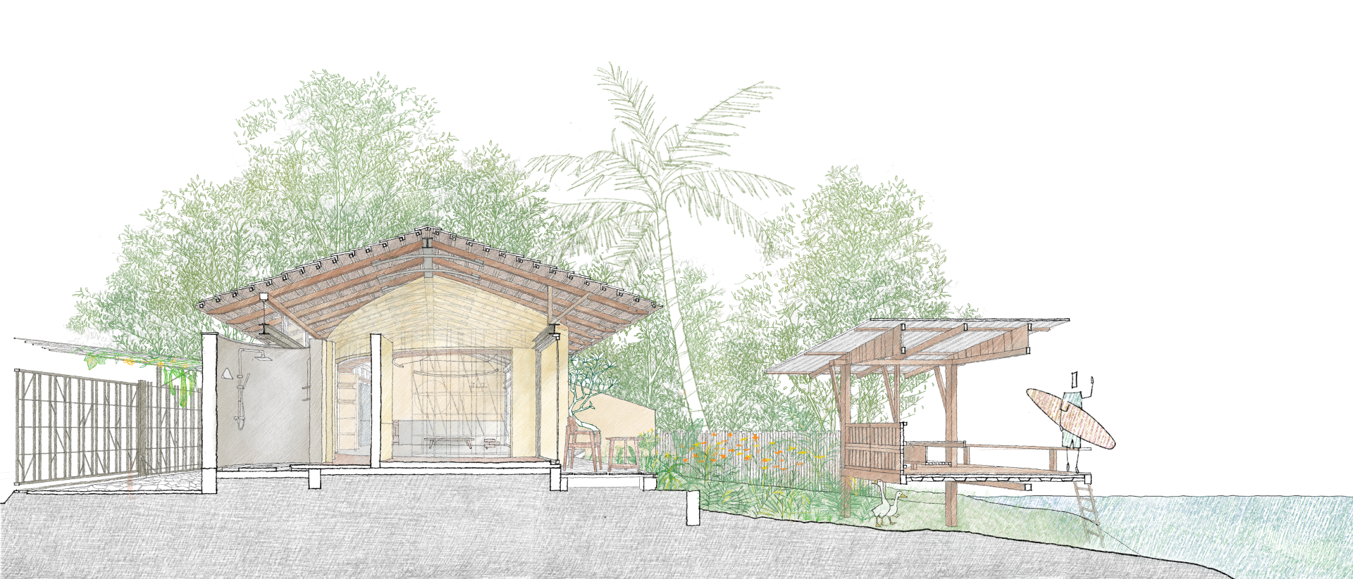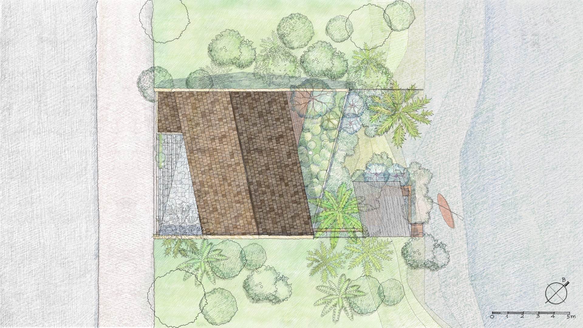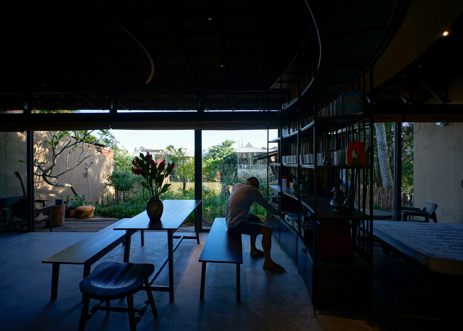 In the suburbs of Cao Lanh City, the house is located in Tan Thuan Tay Village, alongside Nguyen Huu Kien Str. - a newly opened route connecting the suburbs to the city, making way for a soon expansion of the residential area. Our main concern is finding out how to conceive a modern house, while still inheriting the spirit of the place and meeting the particular needs of the owner - a poet who enjoys his solitude.