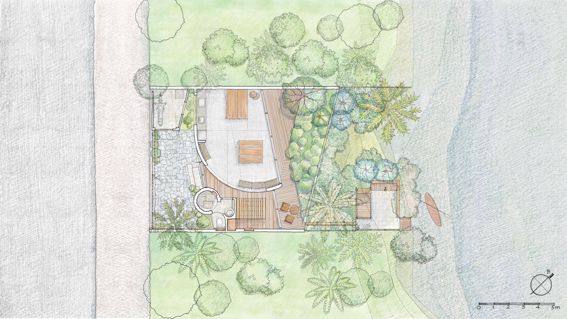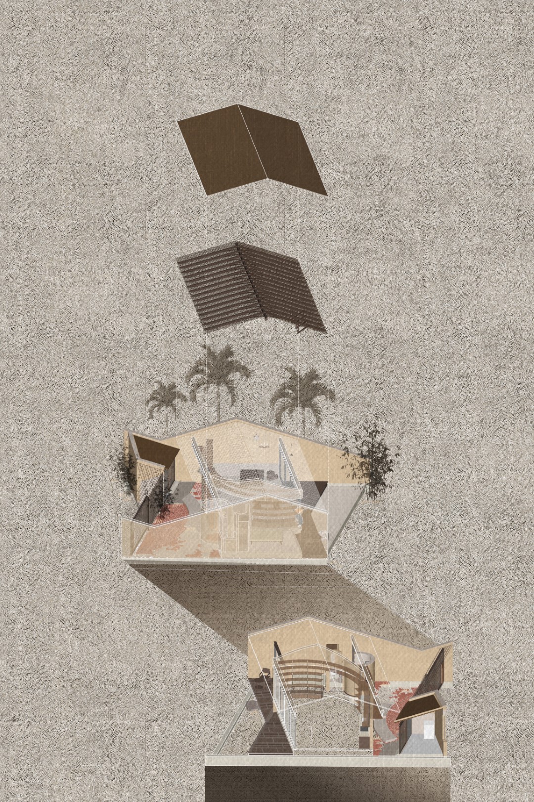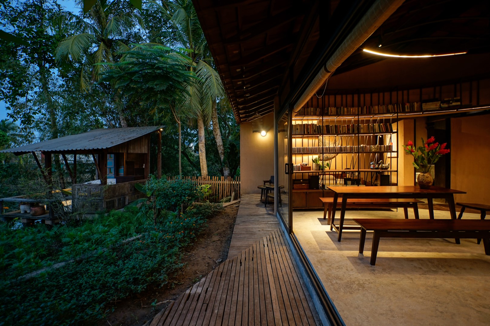 In the suburbs of Cao Lanh City, the house is located in Tan Thuan Tay Village, alongside Nguyen Huu Kien Str. - a newly opened route connecting the suburbs to the city, making way for a soon expansion of the residential area. Our main concern is finding out how to conceive a modern house, while still inheriting the spirit of the place and meeting the particular needs of the owner - a poet who enjoys his solitude.