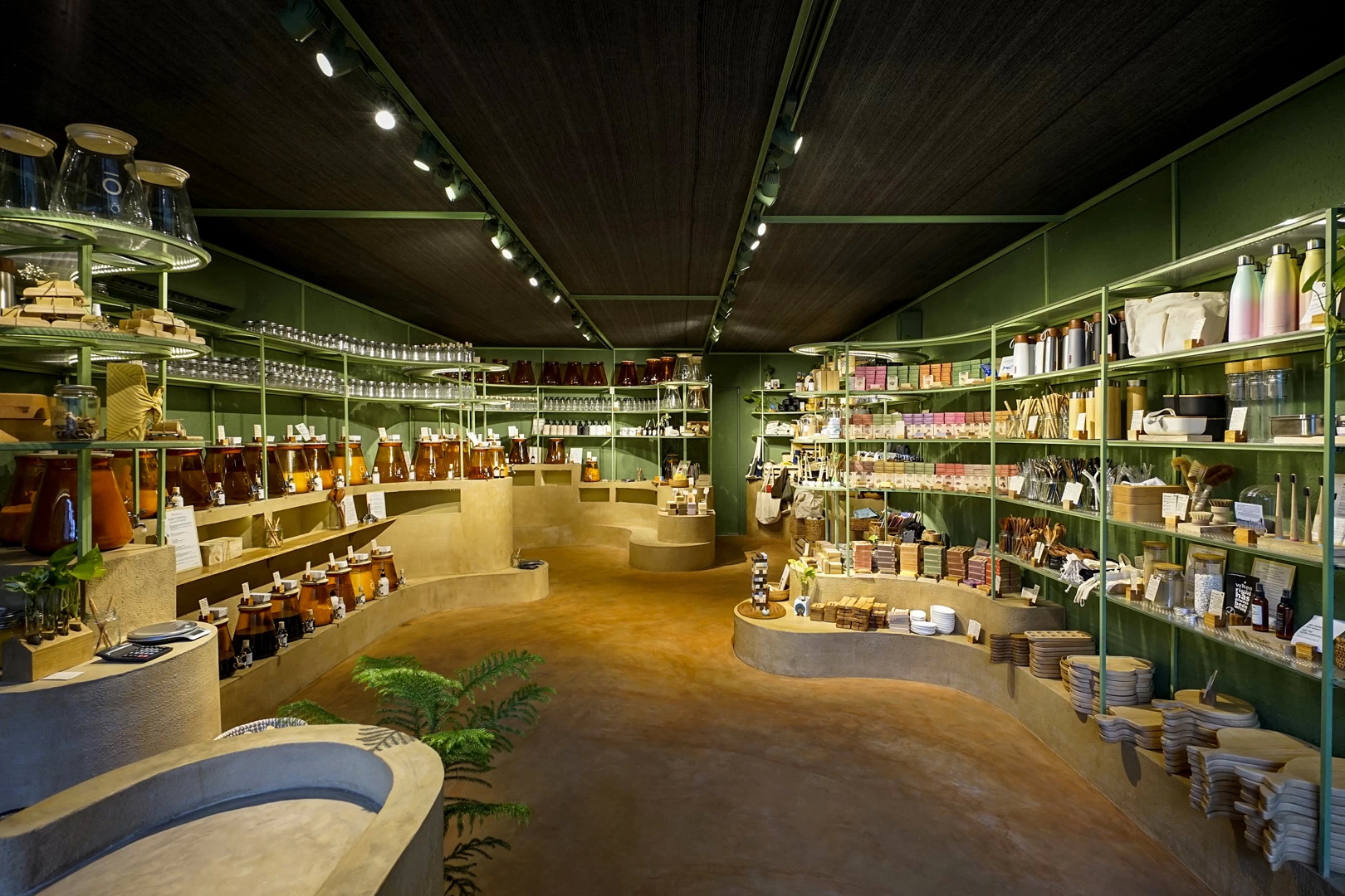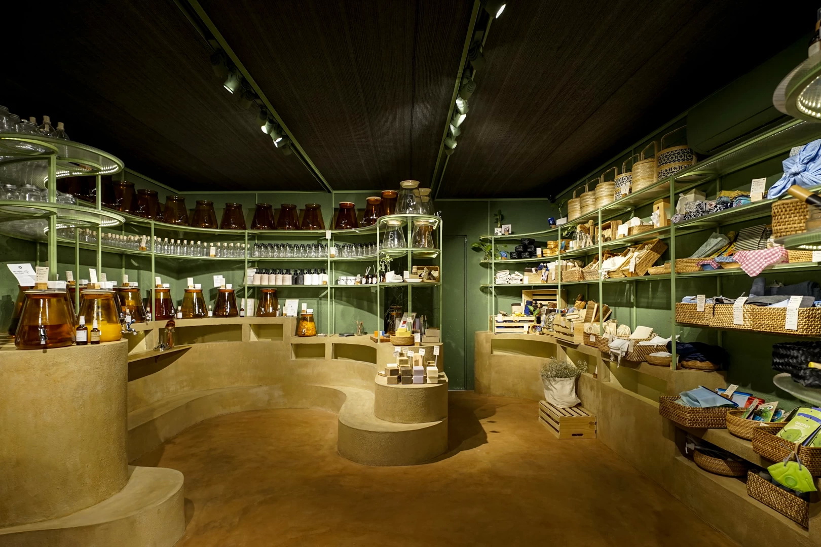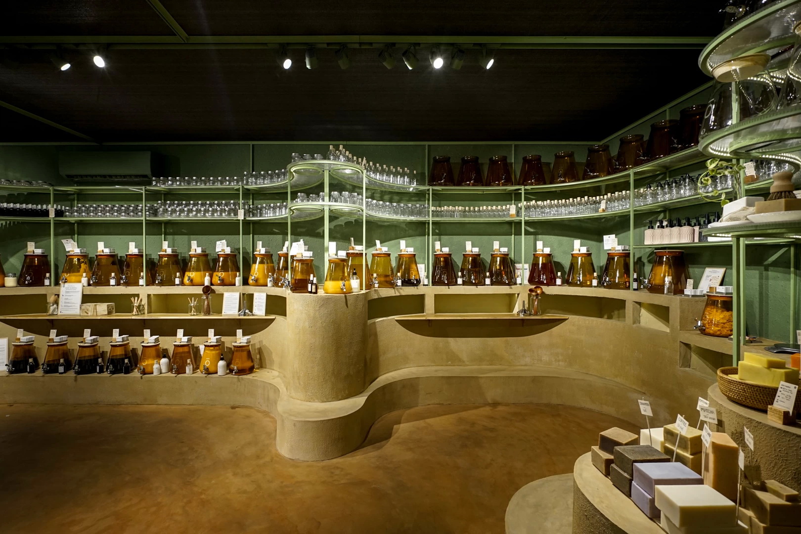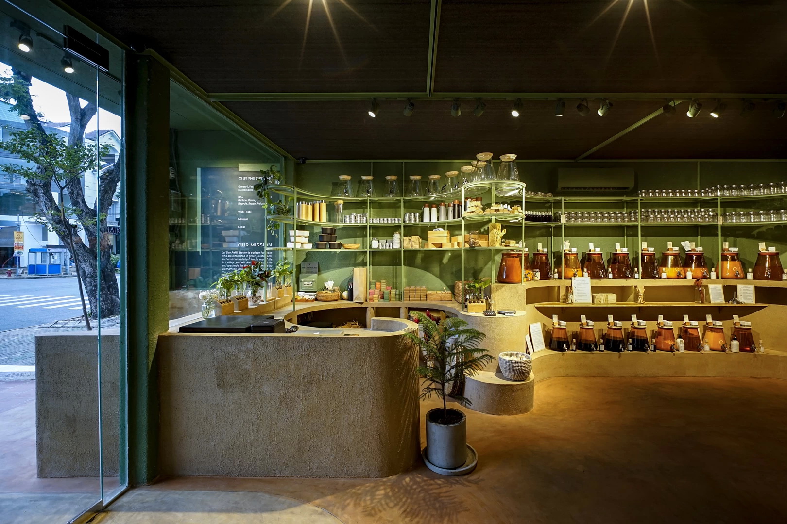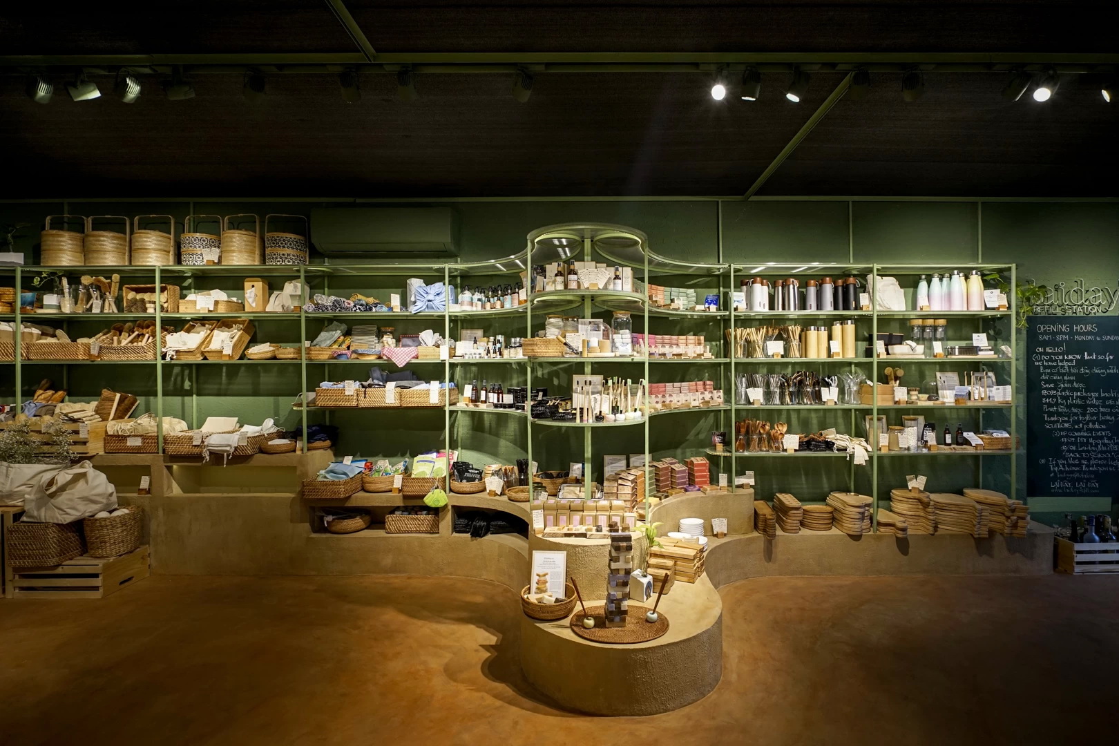 After nearly a year of growing the first Laiday Refill Station in Thao Dien, District 2, we have the opportunity to design the second one launching just right in Phu My Hung, District 7 with around 60sqm floor area. The design quest this time is how to meet the space utilization requirements in this new plot, but still, ensure to retain the distinctive characteristics of the philosophy that Laiday has been pursuing. The context is a prefabricated space which is constructed by an existing 24ft-container extended with steel frame structure. Inspired by the image of terraced fields, the design proposal is featuring a continuous long shelf which begins from the lobby to the waiting bench, cashier area, refill booth, and then back to the starting point. Although the meandering of the display shelf helps to divide the space into separating “pockets of activities”, it still preserves space connection as a whole generally. The in-out relationship, along with the continuity of displaying space, could provide seamless experience for each visitor when stopping by here./.